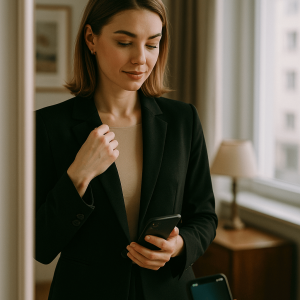Karina stood before the mirror, smoothing the cream blazer’s collar, catching a glimpse of eyes lined in a fine stroke and hair pinned into a neat bun. Reflected...