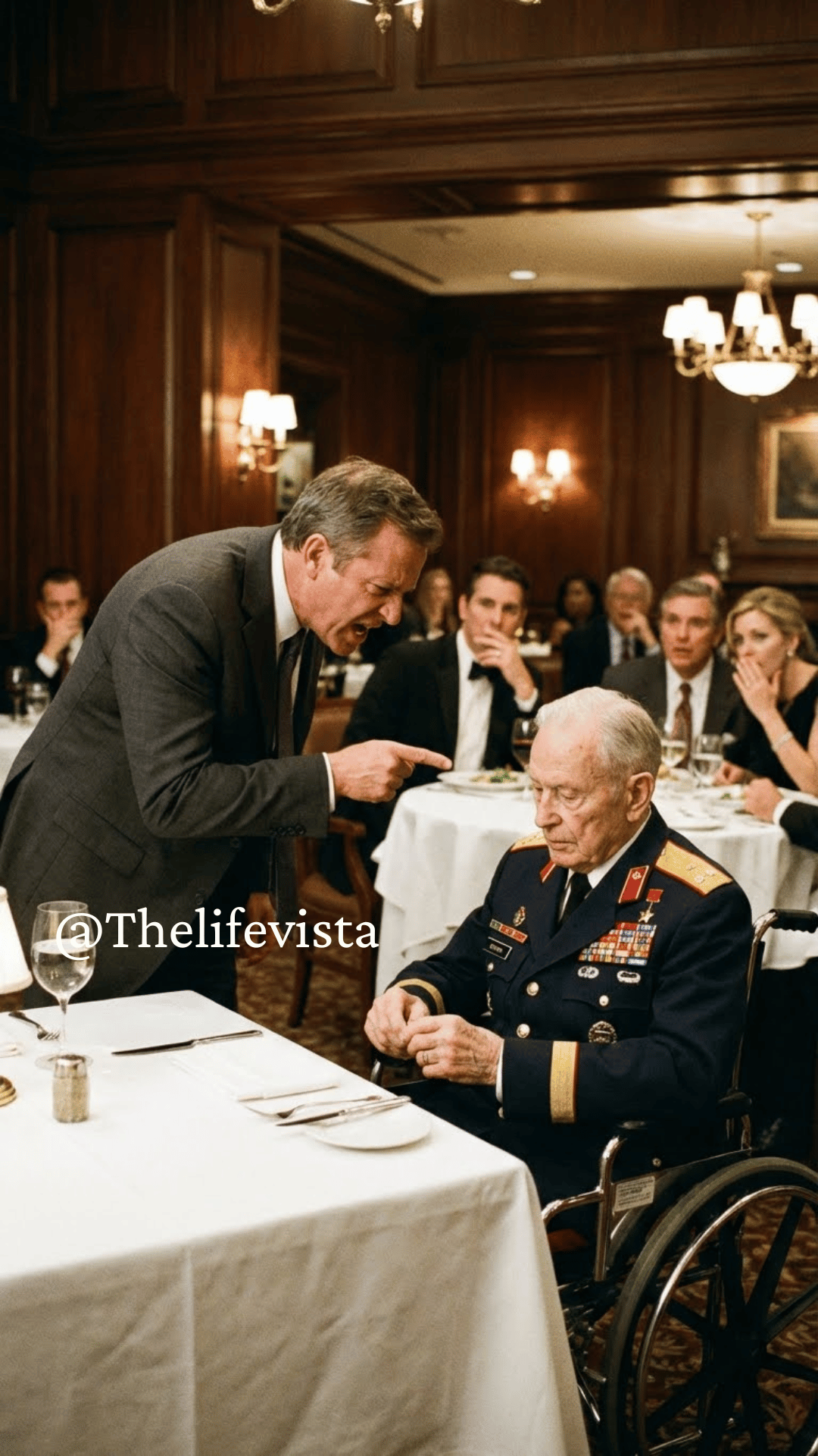 The restaurant owner, that fat, sweaty man who minutes before had thrown the veteran out like trash, now seemed to have shrunk ten centimeters. His apron was stained with grease, and his hands trembled as he dried them again and again on the dirty cloth.