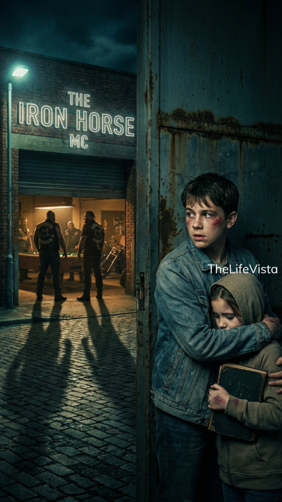“Please, just keep her safe tonight,” a shaken teenage boy begged at midnight, holding a frightened girl outside a notorious biker clubhouse—unaware that opening that door would ignite a violent clash and forever change their brotherhood
