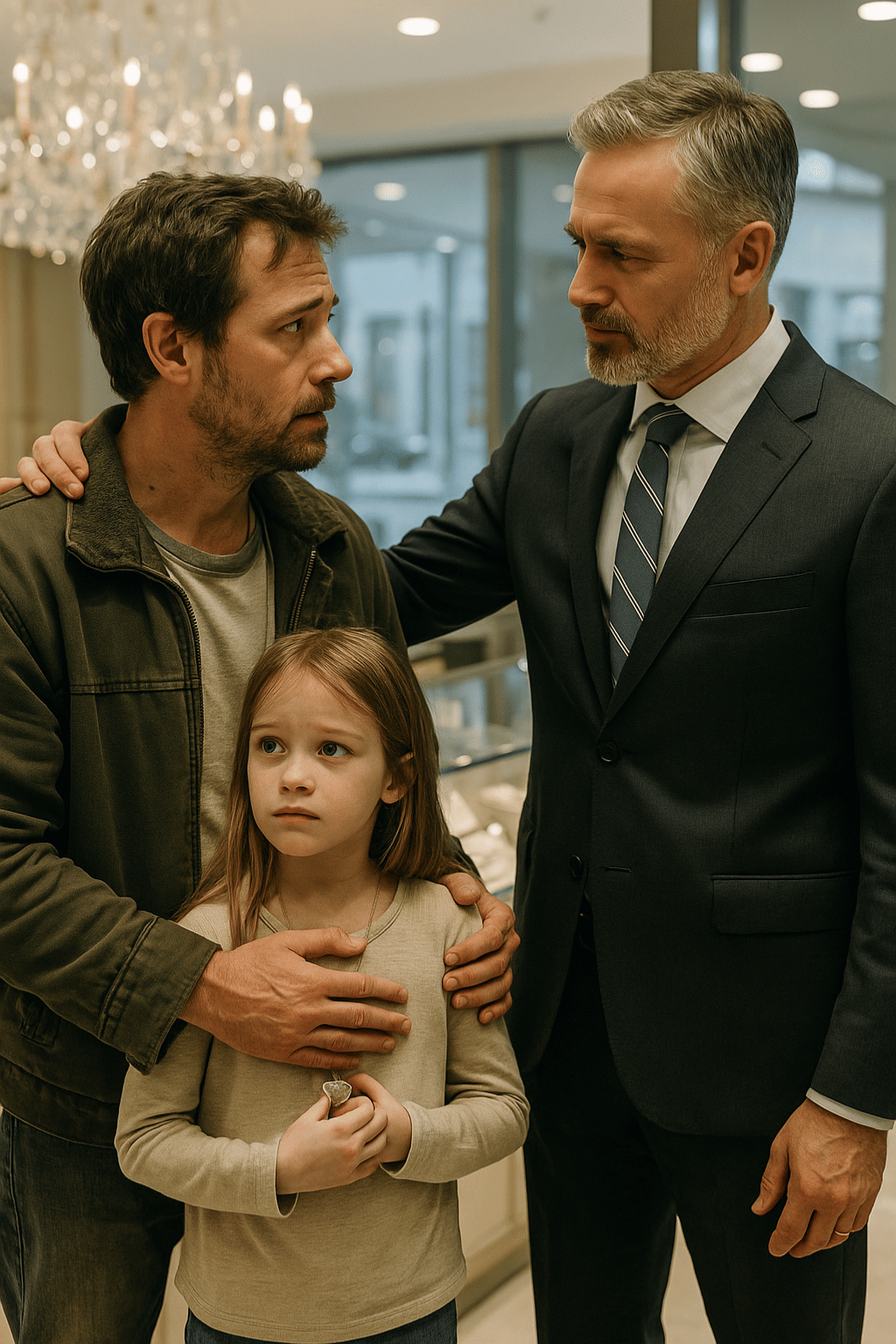 Lily clutched her locket tightly. Her smile glowed brighter than the jewelry around her. And as they left the store, hand in hand, the same people who had mocked them moments before stood in silence, their reflections warped by shame in the marble floors.