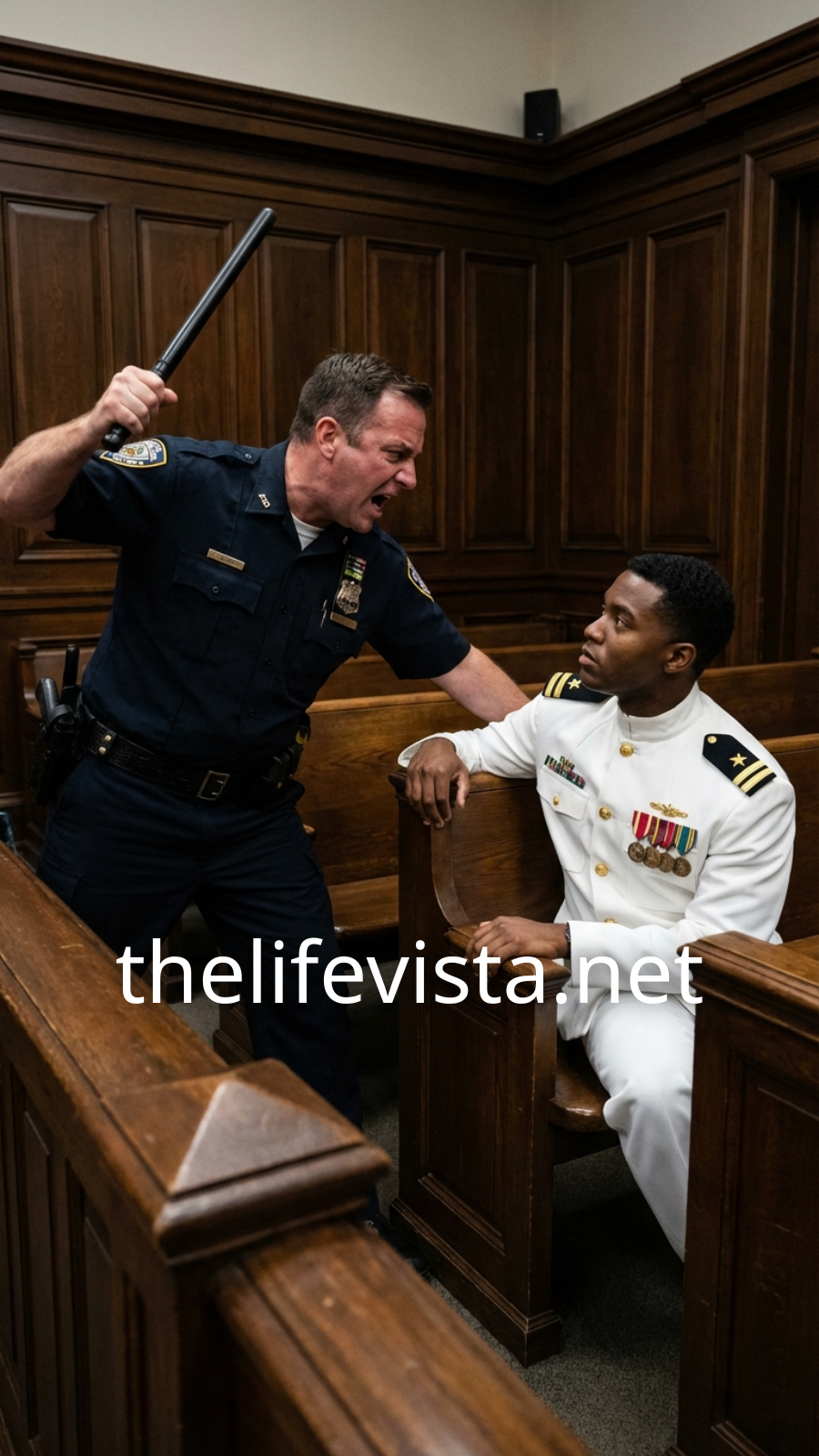 The sound of the scuffle cut through the courthouse hush—fabric pulling tight, a bench scraping backward, a startled gasp from somewhere behind them. Heads snapped around in unison. A ripple of disbelief moved through the room like a wave that couldn’t be stopped.