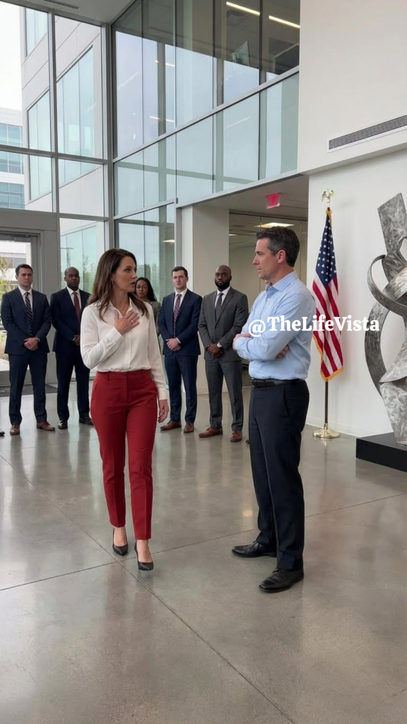 A woman in a sharp navy suit was running toward him. Her heels clicked against the marble floor as she hurried across the lobby. Her ID badge caught the light.
