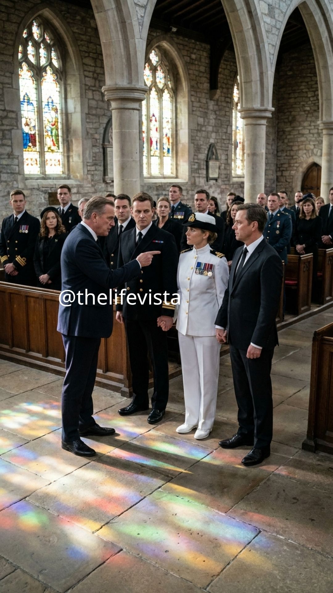 He was sitting rigidly in the very first pew, his posture as stiff and uncompromising as ever, his jaw clenched so tightly a muscle twitched in his cheek. His pale blue eyes were locked aggressively onto my white uniform — not with a father’s pride, not even with mild curiosity… but with absolute, burning judgment.