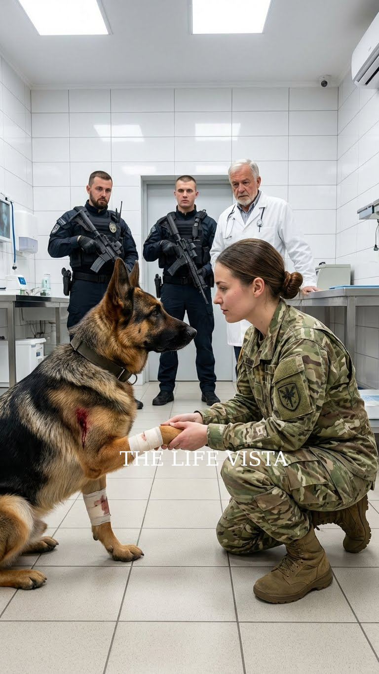 His ears twitched once, swiveling toward her, and for the first time in over an hour, the low rumble in his throat ceased. She didn’t announce herself. Didn’t flash credentials. Didn’t shout orders like the senior corpsman pacing the room.