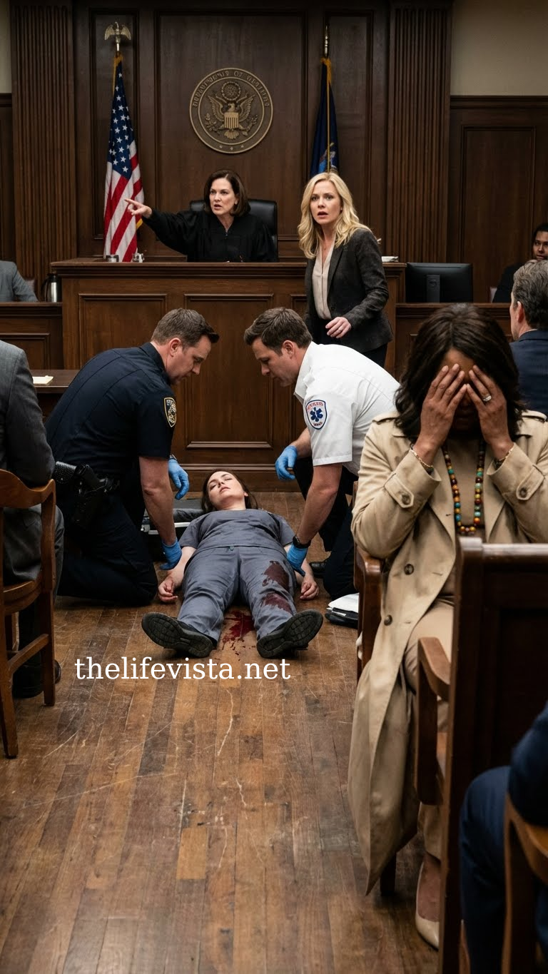 The courtroom blurred into chaos. I felt hands lowering me to the floor, someone placing a jacket beneath my head. My chest tightened as the seizure took over, dragging me under.