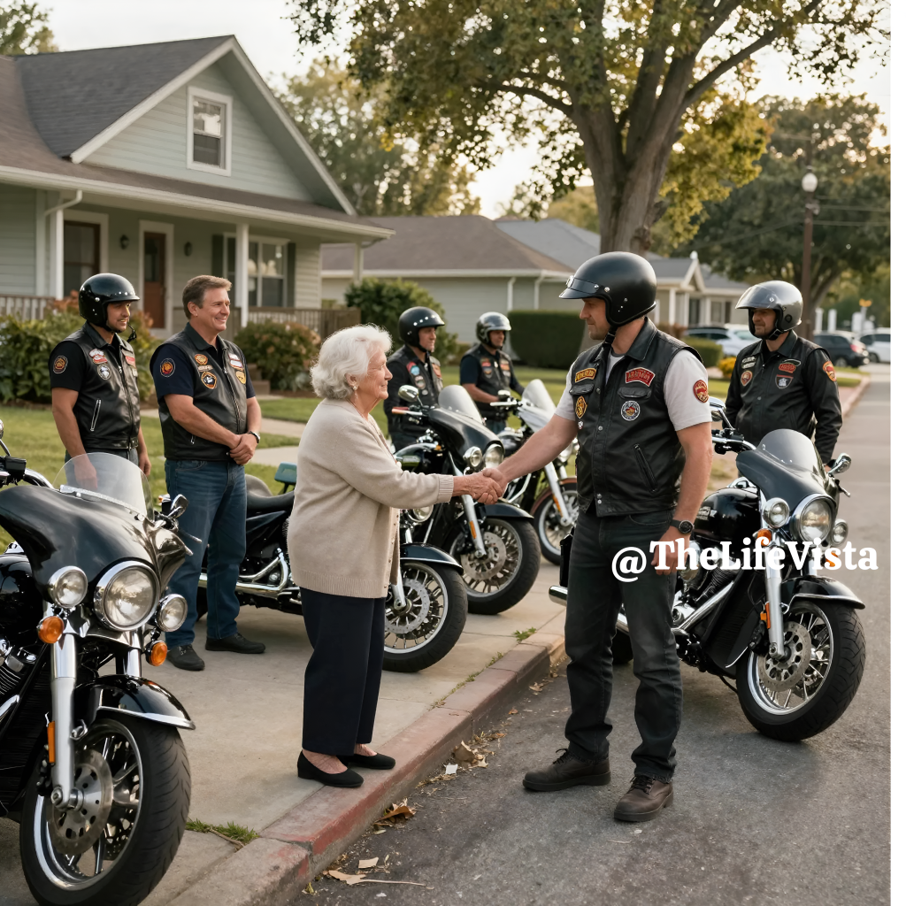 Dorothy May Whitaker clutched her purse tighter the moment the motorcycles rolled onto her street. The sound came first, a low thunder that made her windowpanes tremble and set a faint vibration in the floorboards. She pictured leather vests, loud engines, and patches she did not understand, because those were the images the evening news had trained her to fear. In Dorothy’s mind, danger had finally noticed her small quiet house and decided it was time to arrive. She stood very still in her living room, listening as the rumble grew closer instead of fading away.