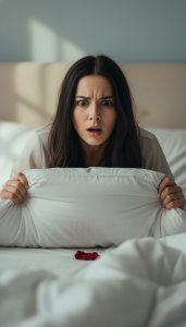 Three days later, while changing the sheets, Madison discovered a red hair tie beneath the pillow.