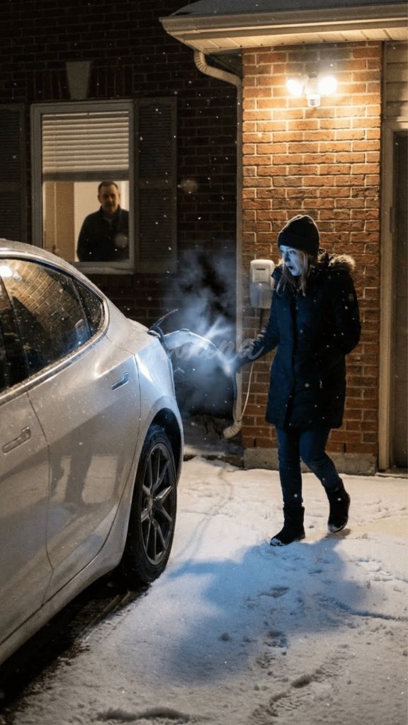 The only sound is the quiet hum of the charger doing its work, pouring my solar power into her expensive car. She looks up as I approach. There is no surprise in her eyes. No guilt, no shame. She offers me a thin, smug smile. Lucas, she says, her voice smooth as honey. Good evening, or I guess it’s morning, isn’t it? Avery, I reply.