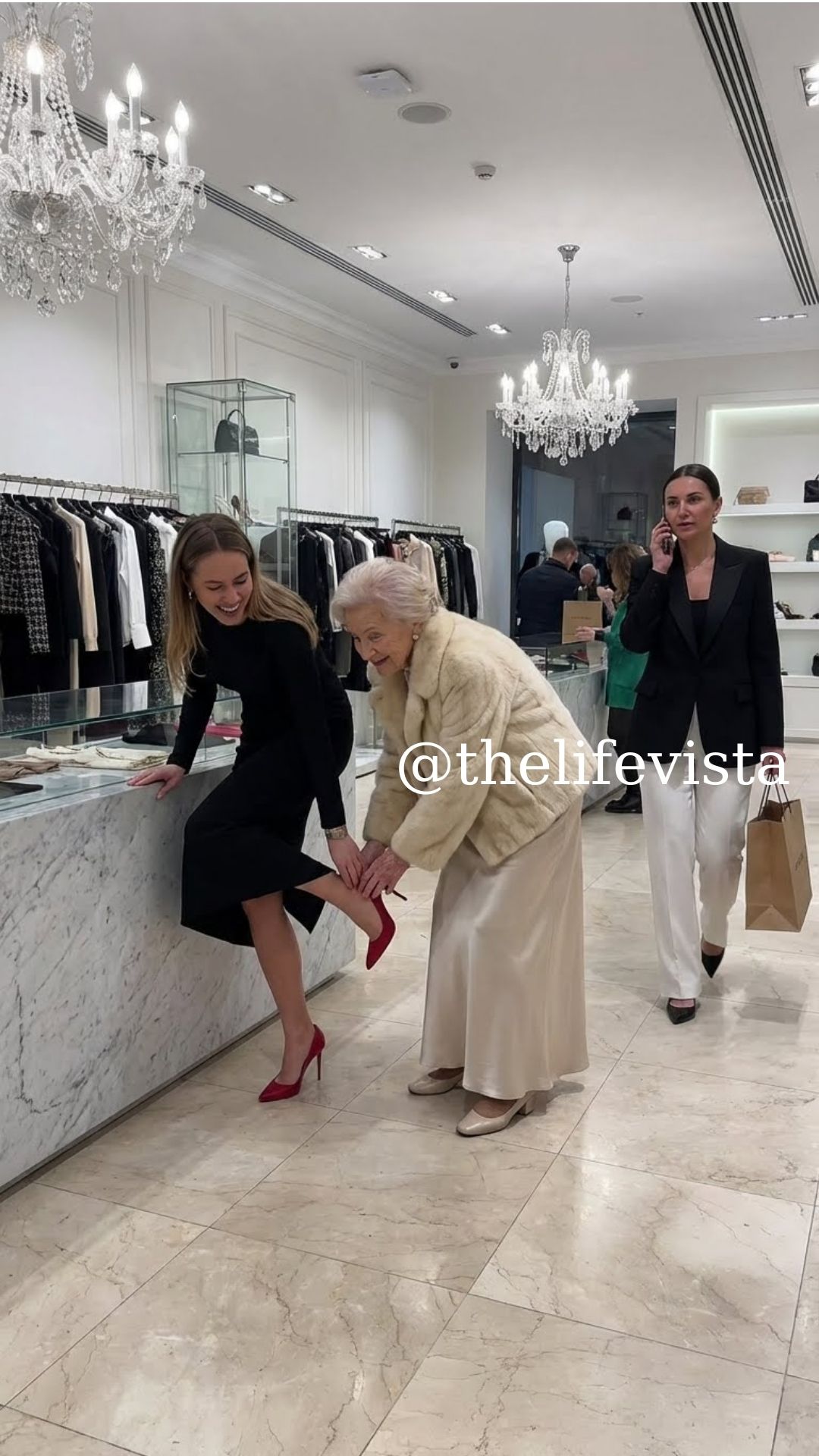 I took a car service uptown and walked into Bergdorf’s just in time to see it: Lucas laughing, hand on the waist of a woman no older than 25, red-soled stilettos in hand. And Margaret? Holding a pair of Louboutins against the girl’s ankle, nodding approvingly.