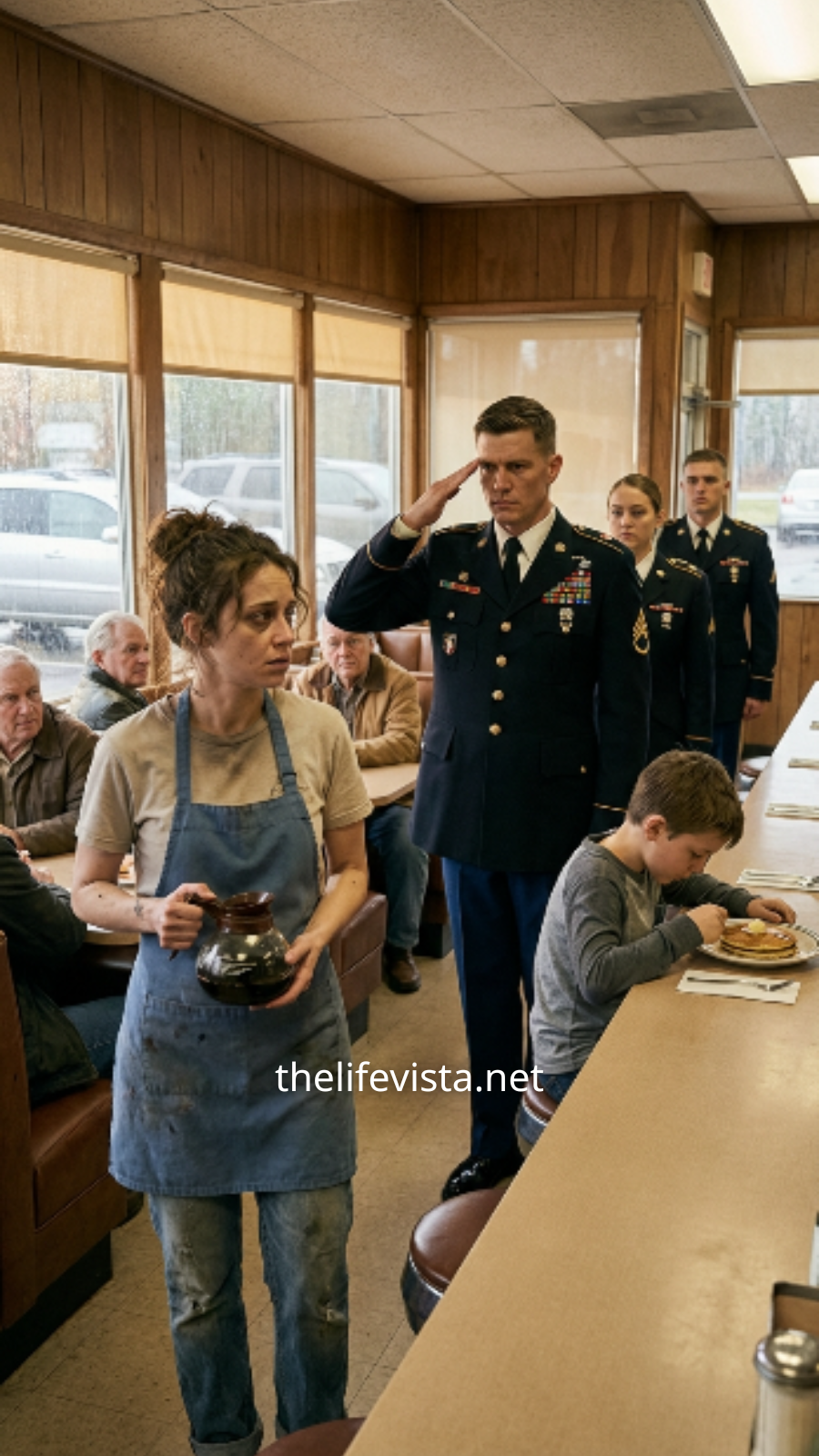 The diner was utterly silent. The patrons who had mocked her sat frozen, shame coloring their faces. Colonel Vance drew himself up to his full height, clicked his heels, and snapped a sharp, perfect salute—a gesture of respect rarely given to civilians. Instantly, the officers with him mirrored the action.