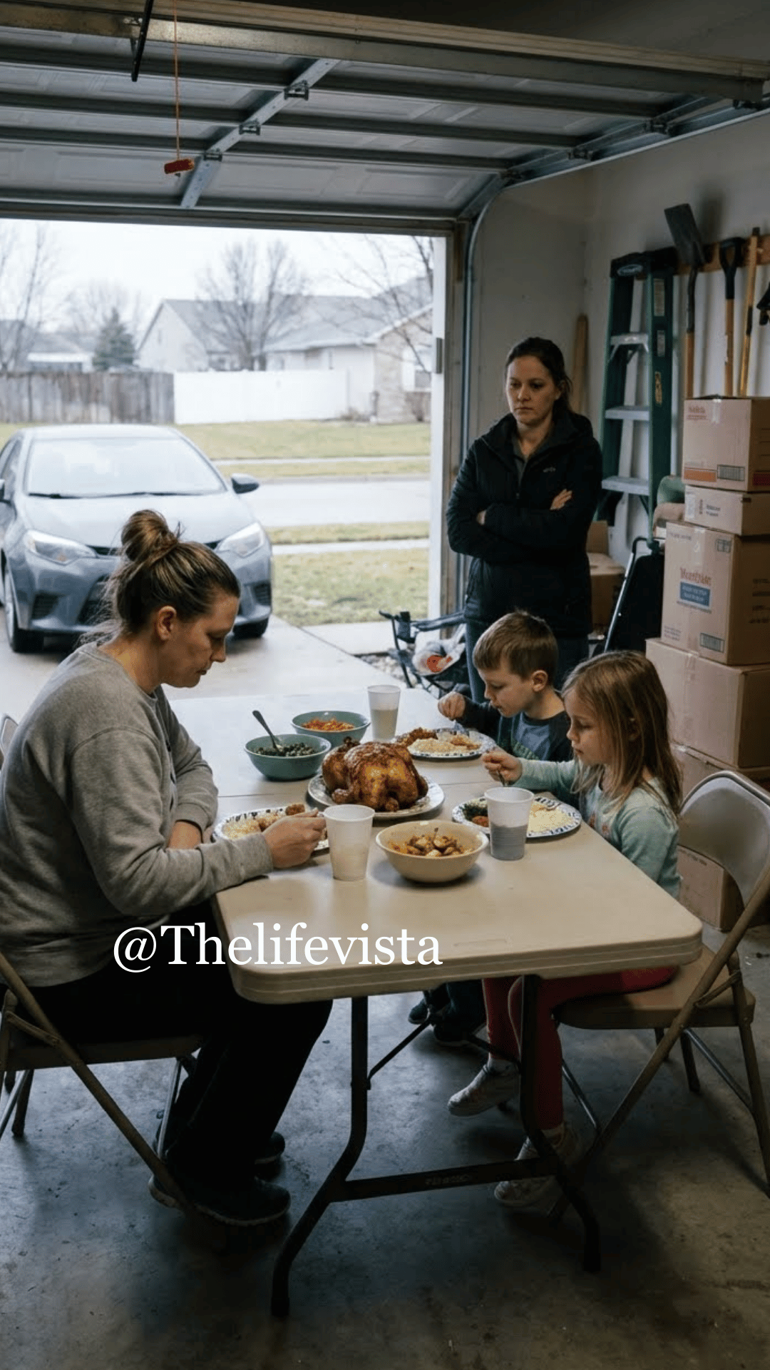 I opened the garage door and saw a folding table, three chairs, and a space heater buzzing in the corner. No place settings. No decorations. Just concrete, oil stains, and the faint smell of paint thinner.
