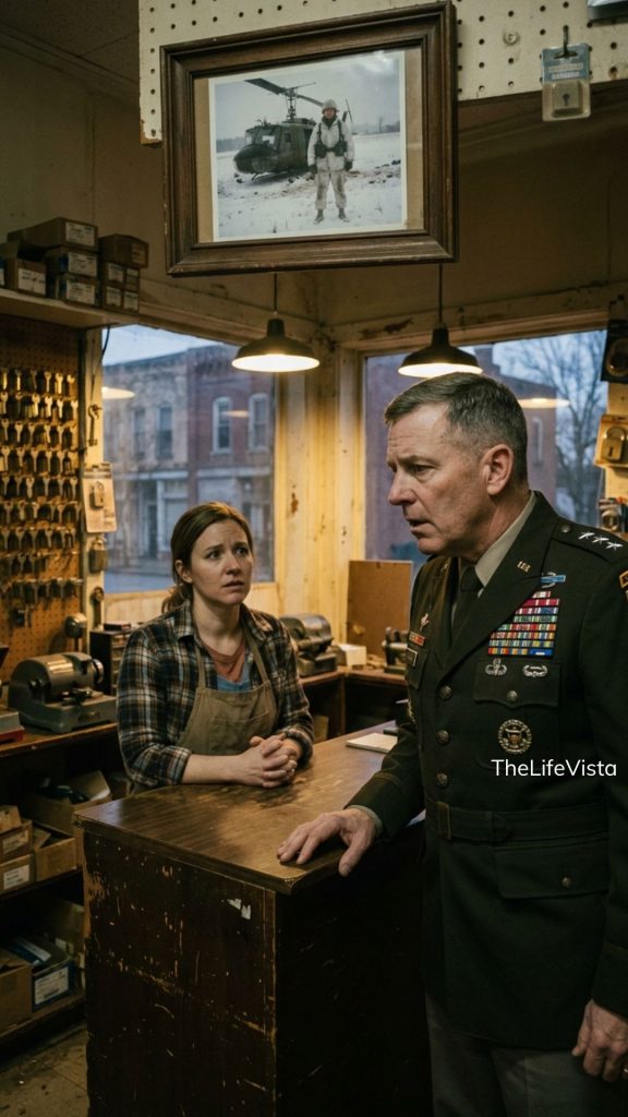 He reached out and lightly touched the edge of the key cutting machine, his gloved fingers tracing the worn metal casing. Mercer’s gaze lingered on a small handpainted sign my father had nailed below the register. It read, “Kease made while you wait. Honesty guaranteed.” A bitter, humorless shadow crossed the general’s face as he read those words.