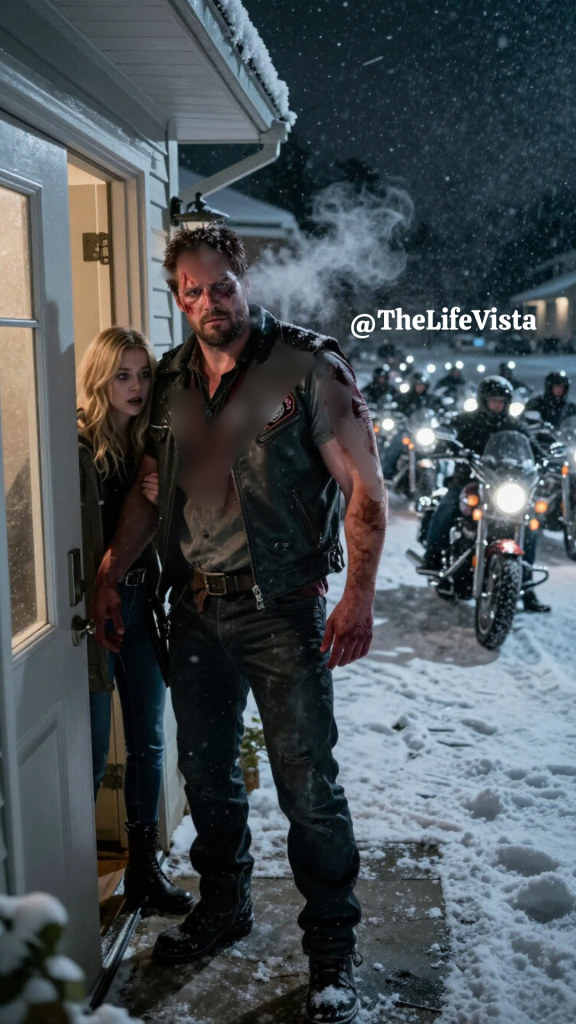 The Hell’s Angels had found them. The rumble of motorcycles grew from a distant growl to a thunderous roar. Victor moved to the door with predatory grace, his shoulders squared despite his injuries. Maya’s heart pounded as he stepped onto the porch, letting in a blast of cold air. Through the window, she watched in horror as bike after bike appeared through the swirling snow.