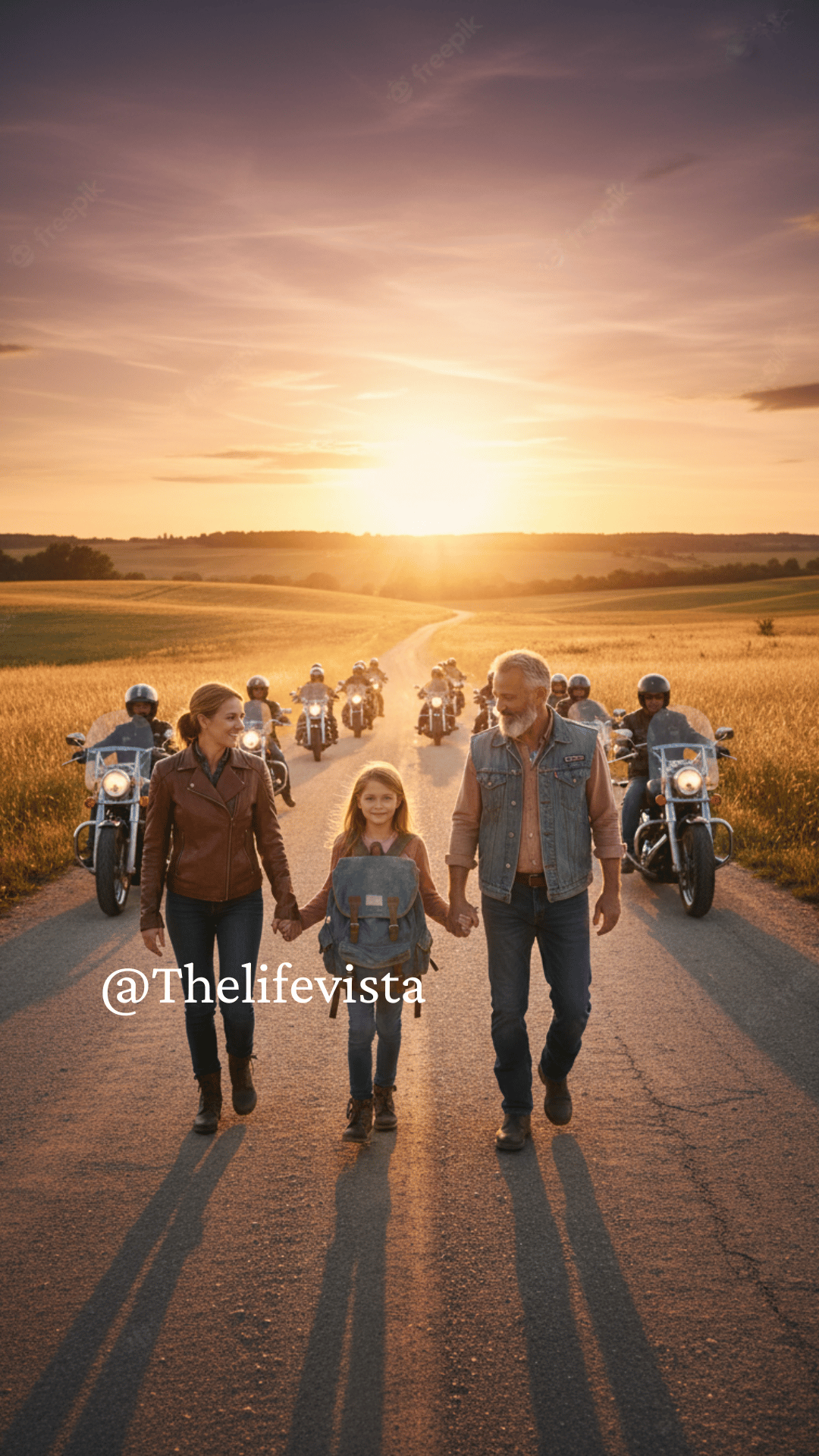 The next morning, as Lily walked toward the bus stop, the sound of engines rolled through the misty country road. She froze. A line of ten motorcycles appeared behind her — not roaring aggressively, but moving steady, protective. At the front was John, helmet off, waving.