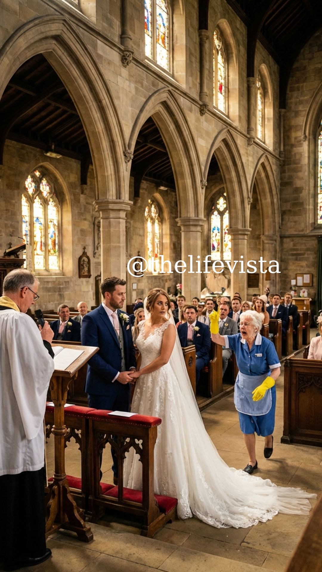 Grace reached the foot of the altar, breathless, tears of fear and courage streaming down her wrinkled cheeks. She did not look at the bride. Her eyes—filled with pain—were fixed only on Michael.