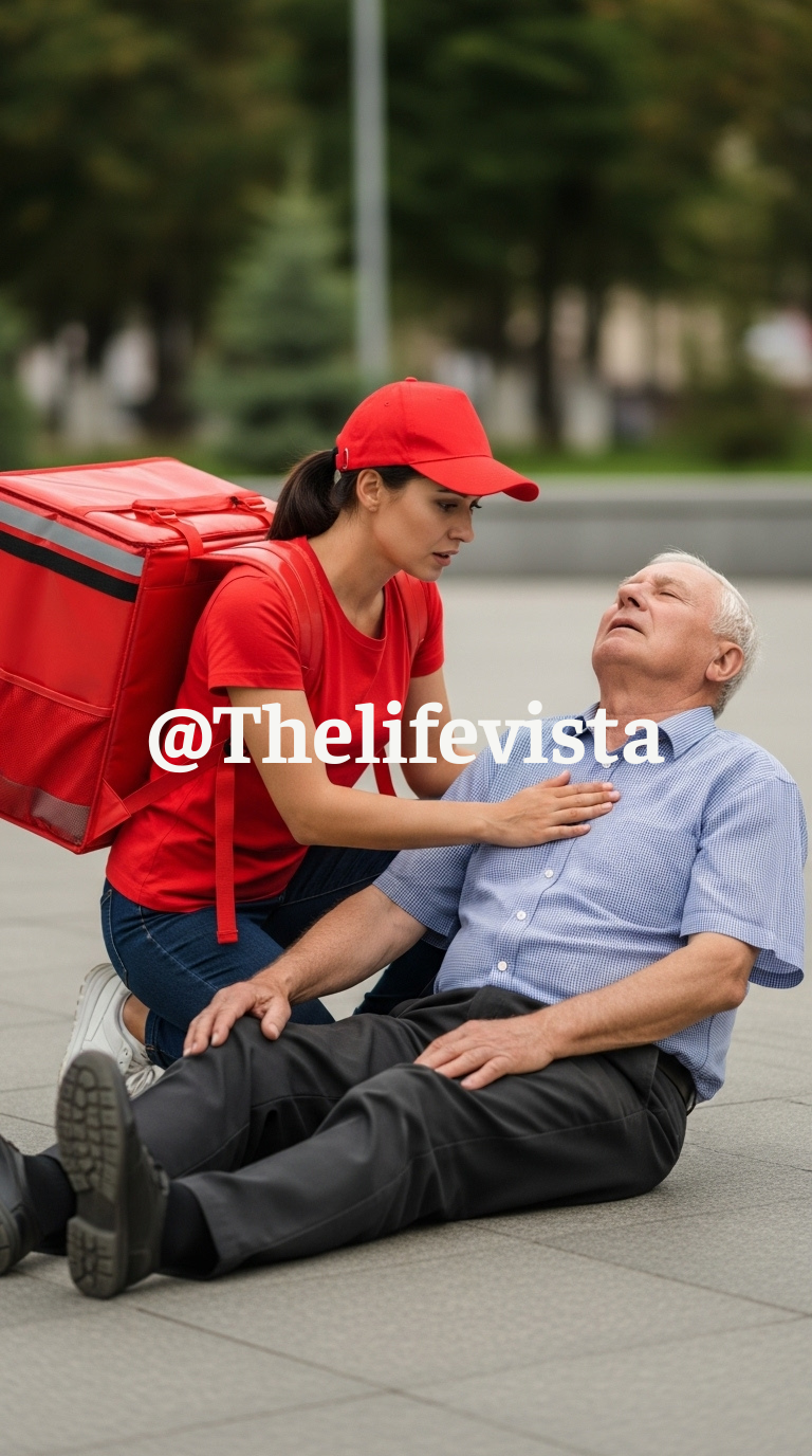 Just a few meters away, a young girl in a red jacket and black jeans pulled her delivery bike to a sudden stop. The time on her phone flashed urgently. 12 40 3 p.m. She had only 17 minutes left to make a crucial delivery or she’d be fired. The goods in the delivery box behind her were labeled urgent, fragile, prepaid. Her hands trembled on the bike handle. She looked at the old man again. People were whispering, “Don’t touch him.
