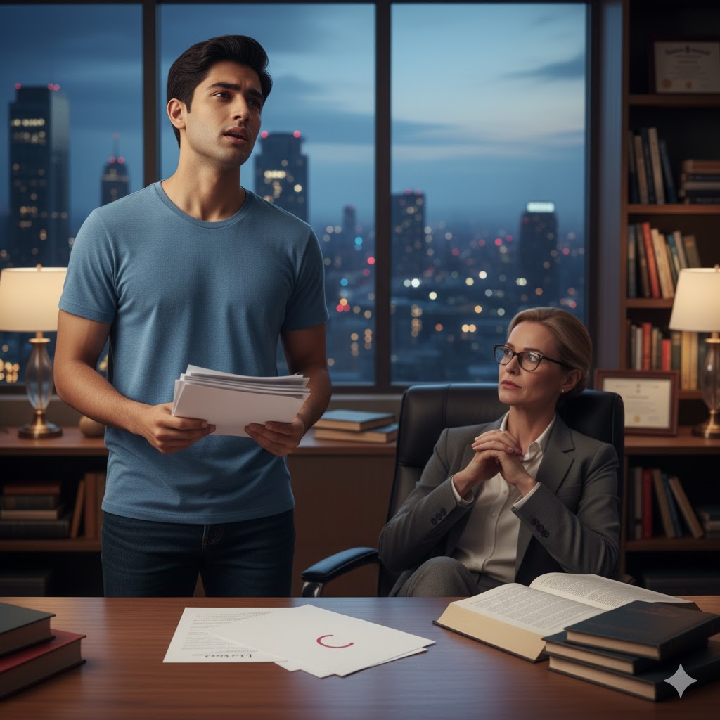 Ryan hesitated before closing the door, feeling a knot in his stomach. He wasn’t sure if this was an academic discussion or something else entirely. But Professor Thompson gestured toward the chair across from her desk.