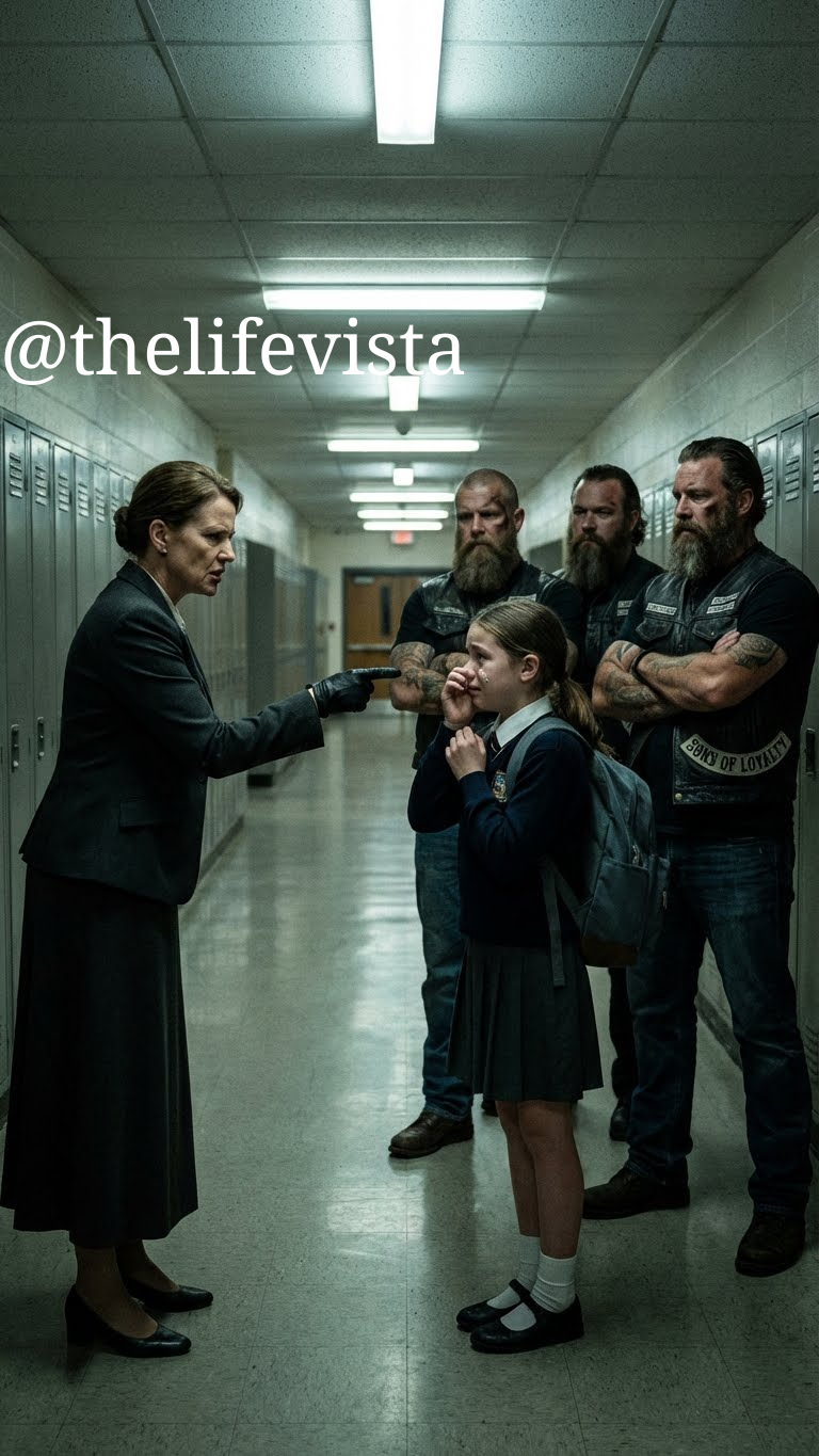 Through the reinforced glass of the school’s front doors, she saw them. Three enormous motorcycles, chrome and black, parked in the fire lane like alien beasts. Beside them stood three men who looked just as out of place.
