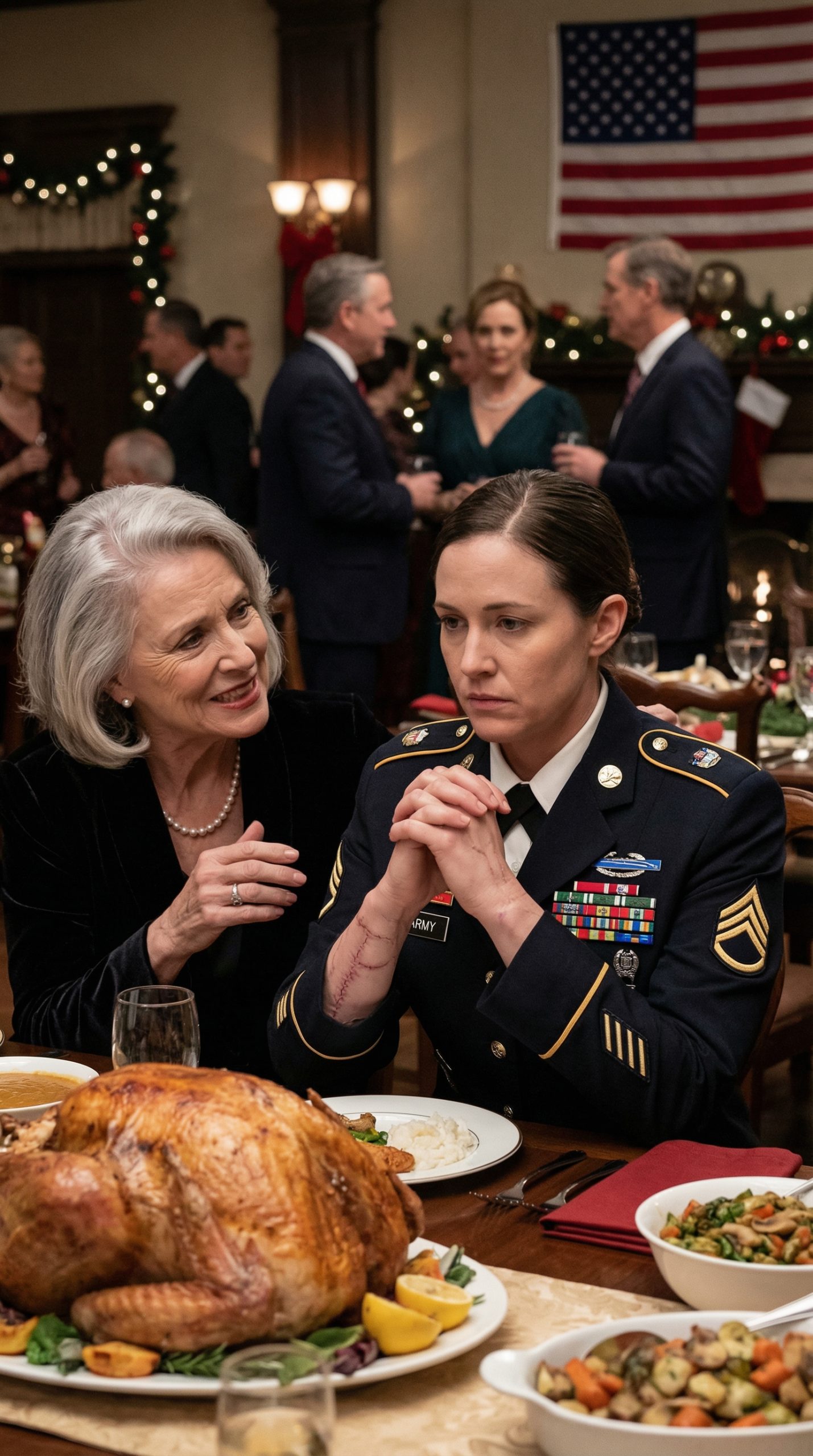 I am Isabelle, 38 years old, a lieutenant colonel in the United States Air Force, and a survivor of sniper fire in Afghanistan. But my deadliest enemy doesn’t hold a rifle. She is sitting across from me at the Thanksgiving table, wearing a string of pearls and smiling as I knock over a glass of wine. My right arm jerks uncontrollably, a permanent souvenir from saving my squad.