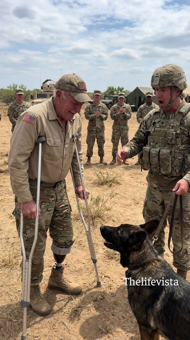 Because every morning after that, soldiers arriving at the training yard saw the same quiet scene near the fence. A wounded veteran walking slowly across the gravel with the help of a brace. And beside him, a German Shepherd moving in perfect step, never more than a foot away, watching the world with steady eyes that no longer looked like they were searching.
