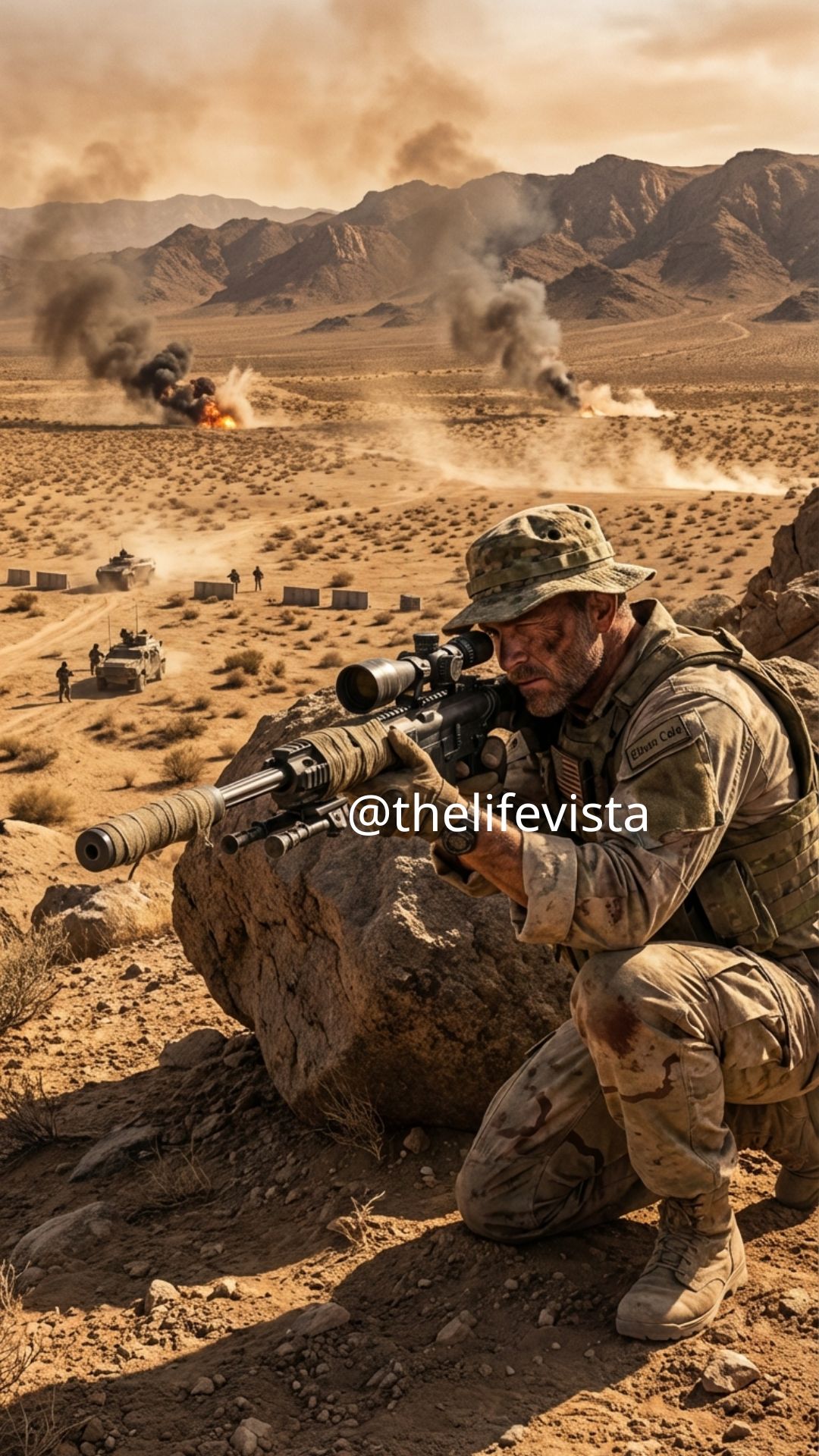 Silent Guardian: The Precision of One Man’s Rifle in the Face of Impossible Odds. In a desolate desert valley, a lone sniper’s deadly accuracy and unwavering focus become the turning point in a battle where survival seemed impossible, proving that a single skilled soldier can alter the course of a desperate engagement and save lives when all hope seems lost
