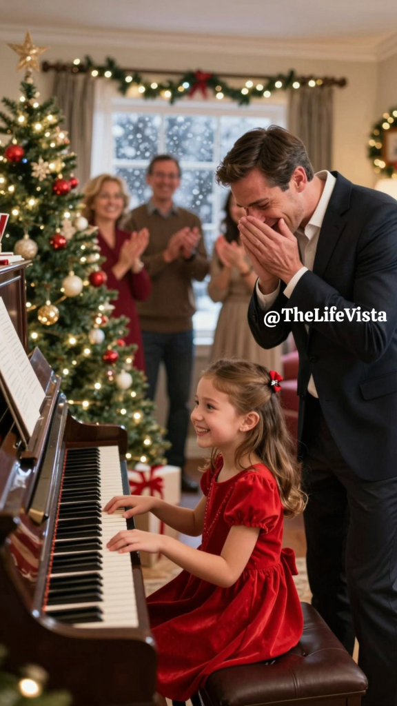 Her fingers brushed the side of the piano, as if expecting him to join her. He swallowed hard and nodded, the motion small and unsteady. The chandeliers above seemed suddenly too bright, the smiles around him strangely hollow. He had spent years observing life from a distance, and now life stood directly in front of him, embodied in a child who carried someone else’s patience and love in her hands.