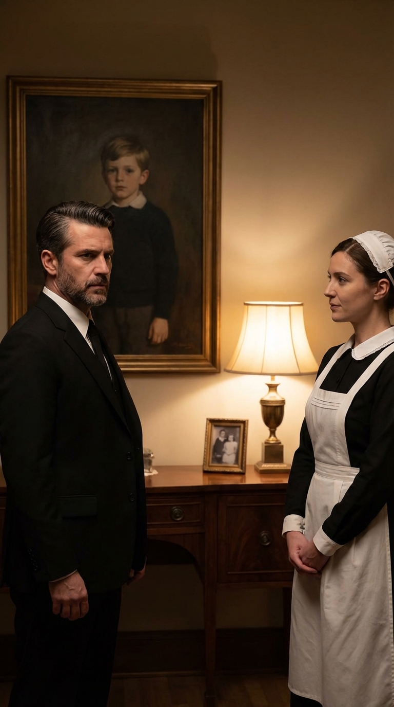 “Sir, this boy lived with me at the orphanage until he was fourteen,” said the cleaning lady, her words echoing in the mansion’s silent hallway, shattering the serenity of the luxurious surroundings. The millionaire, still frozen before the old portrait, felt as if the floor were slipping from his grasp. The boy’s portrait hanging on the wall was an identical copy of his brother, who had disappeared more than thirty years before.