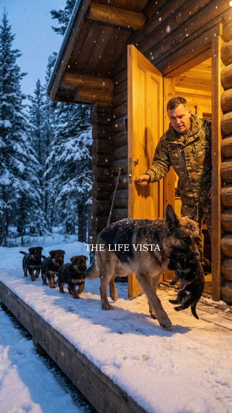 Ethan stood motionless, cold air brushing his face, his hands shaking—but not from the temperature. Something loosened inside his chest, something warm and delicate he hadn’t felt since before the war. And when she appeared again through the snow, another pup clenched carefully in her jaws, he was ready.