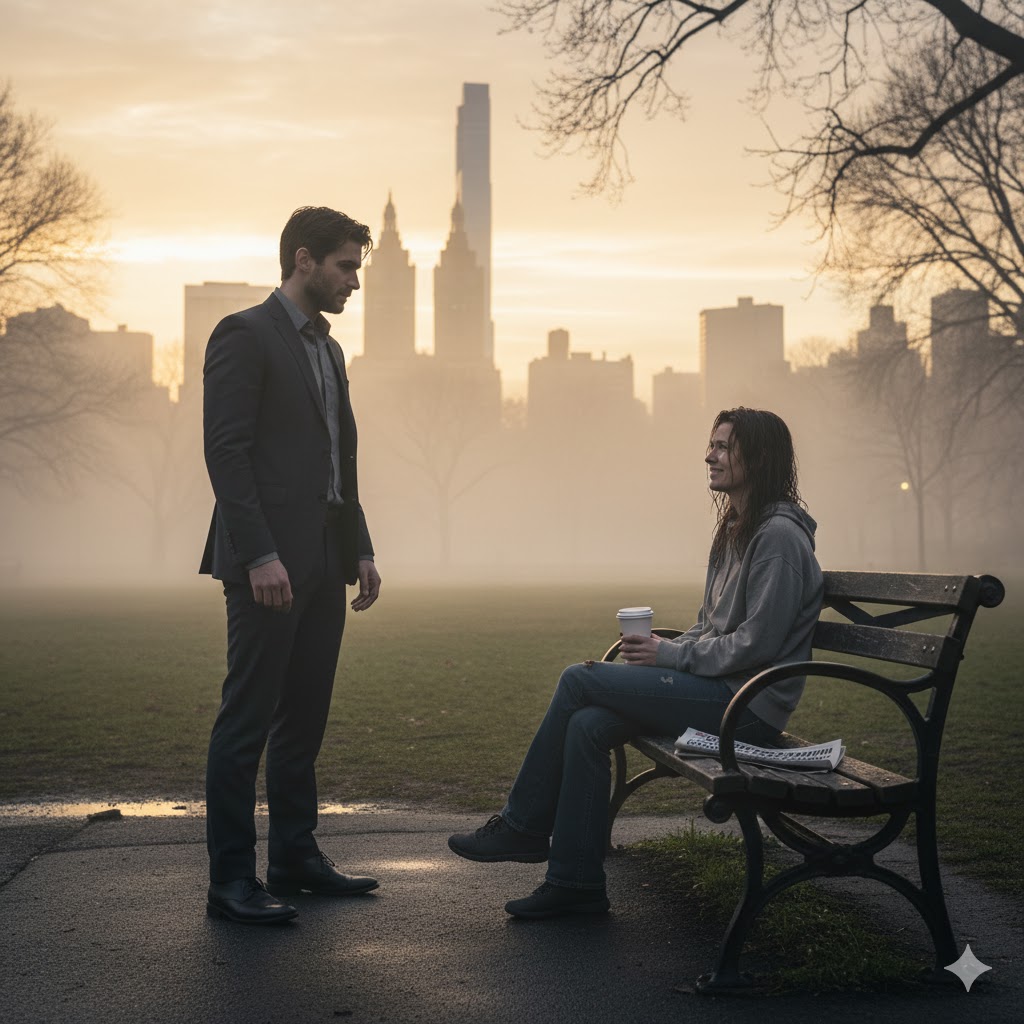 A week later, while walking through Central Park at dawn, he saw her again—Lara, sitting on a bench, sipping cheap coffee from a paper cup.