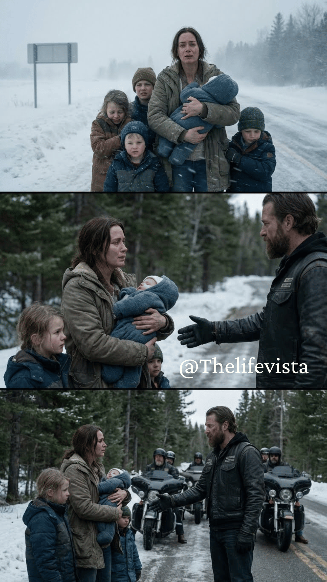 Lucas and Noah, eight years old, watching their mother fall apart in the middle of a frozen highway.