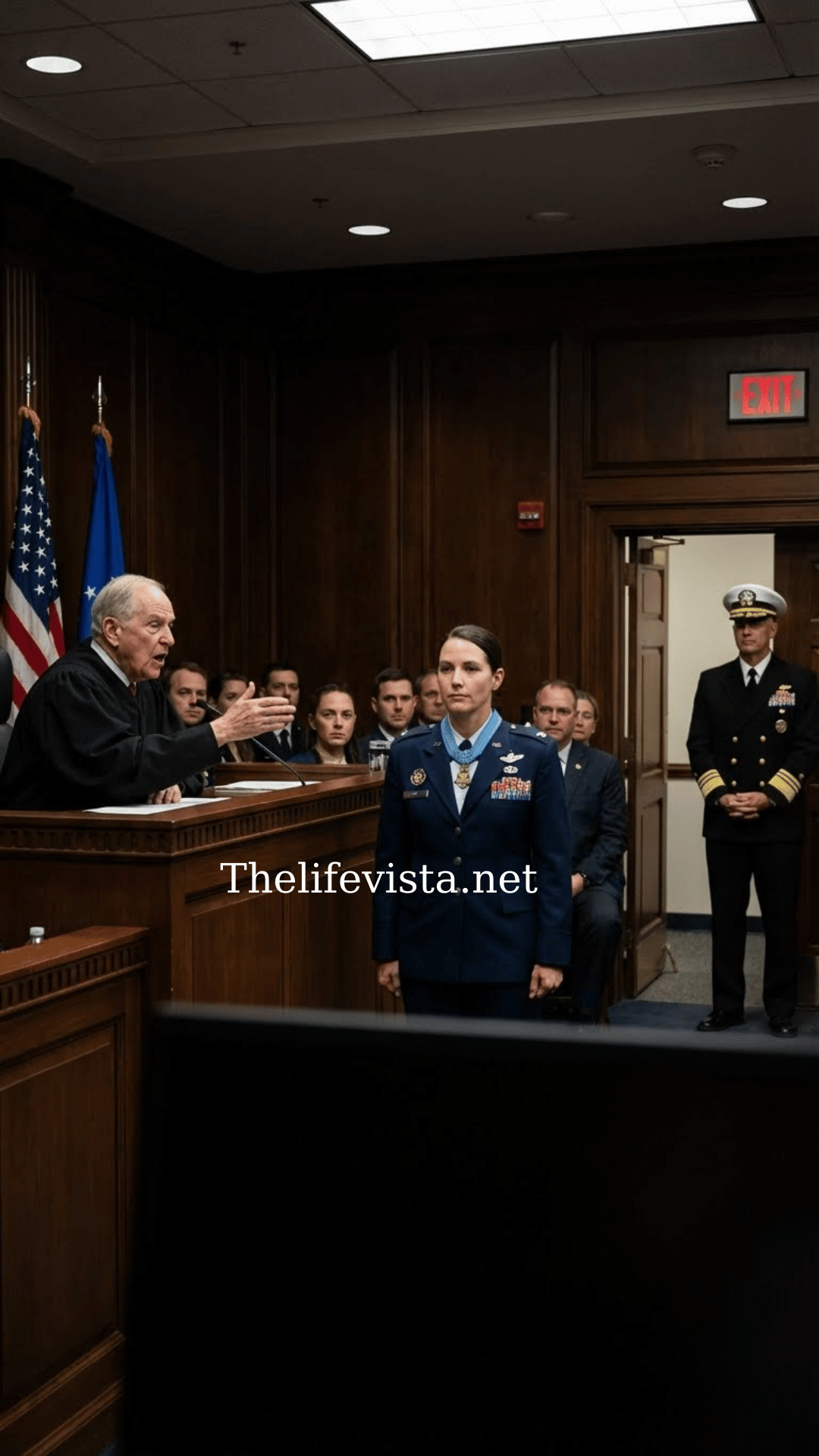 The judge leaned forward coldly. “I am the authority here. Courtrooms are not stages for personal decoration.” Bailiff Michael Reynolds shifted beside the aisle. He studied the ribbon closely. It wasn’t flashy. It wasn’t decorative. It looked heavy somehow—like something meant to be earned rather than purchased.