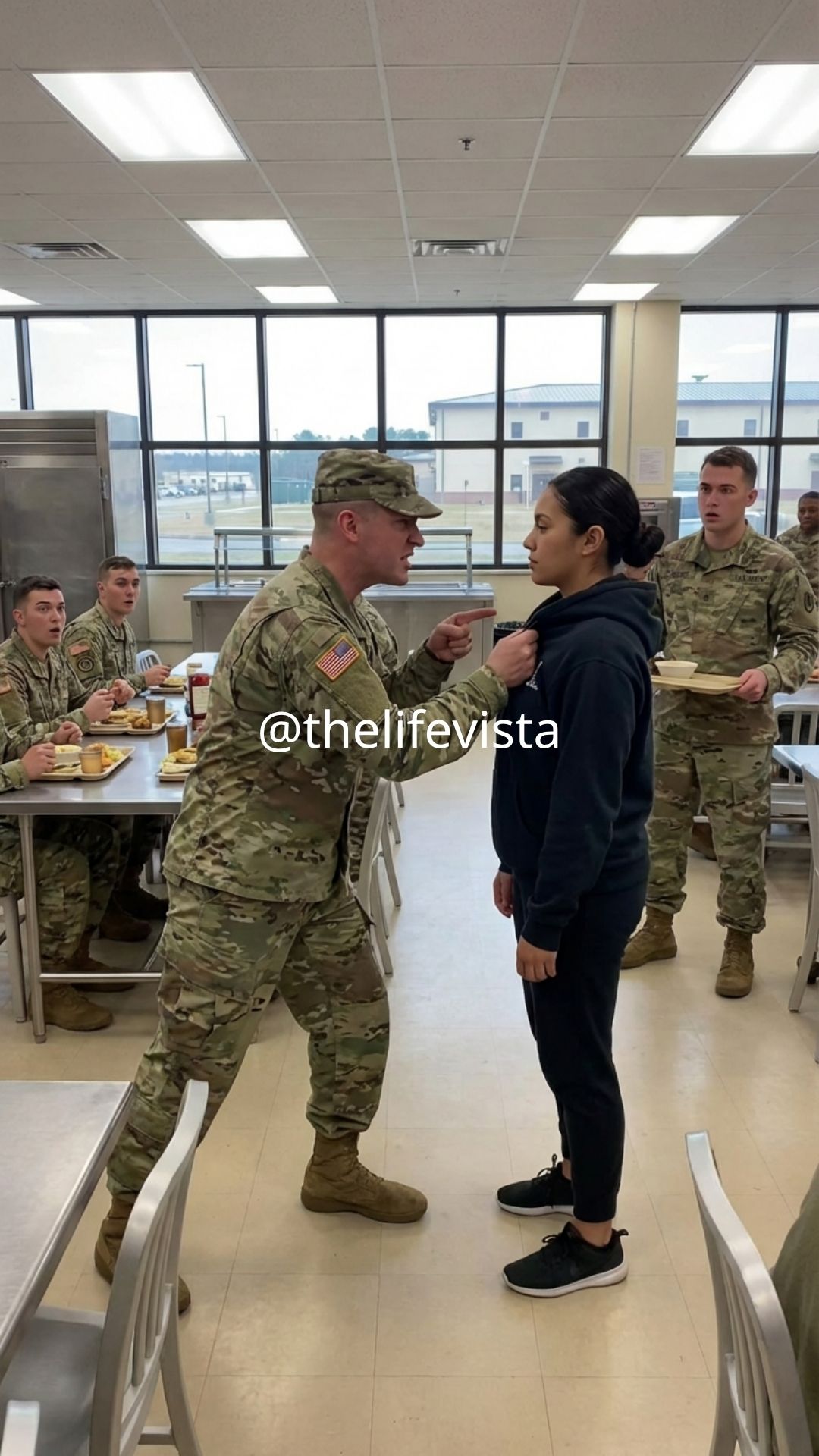 The midday rush at Fort Ridgeway carried a rhythm that rarely changed, because the clang of metal trays, the low rumble of overlapping conversations, and the impatient shuffle of boots against polished floors created a kind of predictable noise that most people stopped noticing after a few weeks on base, yet on that particular afternoon, the atmosphere shifted in a way that felt subtle at first but quickly became impossible to ignore, as if something invisible had tightened around the room.