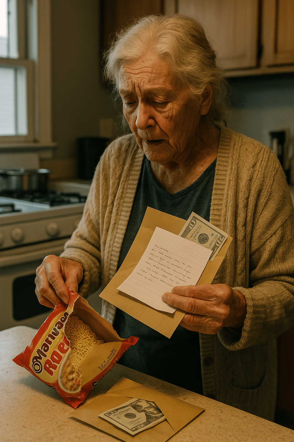 But when she tore the package open, something unexpected fell out — a sealed envelope hidden between the noodle packets.