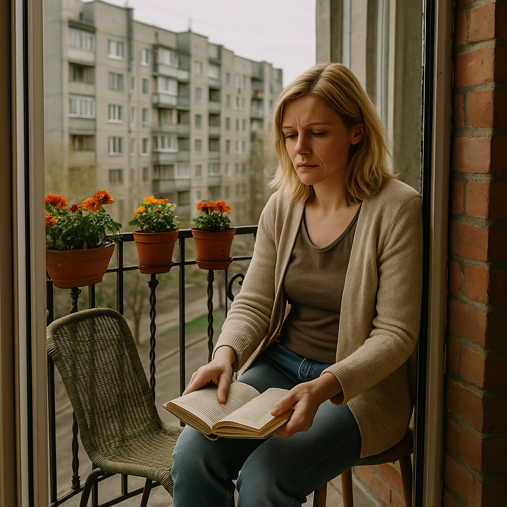 A cool spring wind skimmed the fifth-floor balcony. Early sunlight fell across the book Eleonora was reading, making the lines tremble like a breath. The city woke outside—children laughing in the courtyard, sparrows chattering in the hawthorn trees.