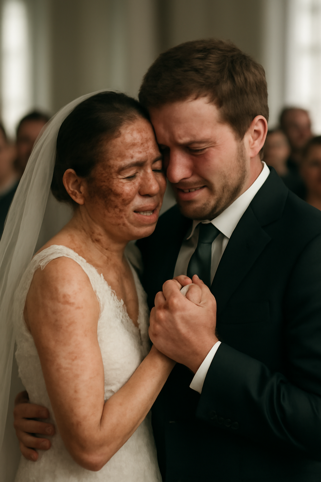 And as they stood there, together, hand in hand, the groom finally realized what he had failed to see before: true beauty is not in faces or reflections, but in the depth of the connection between two souls. It is in the love shared in the darkest of times, and the courage to stand together, no matter what scars one might carry.