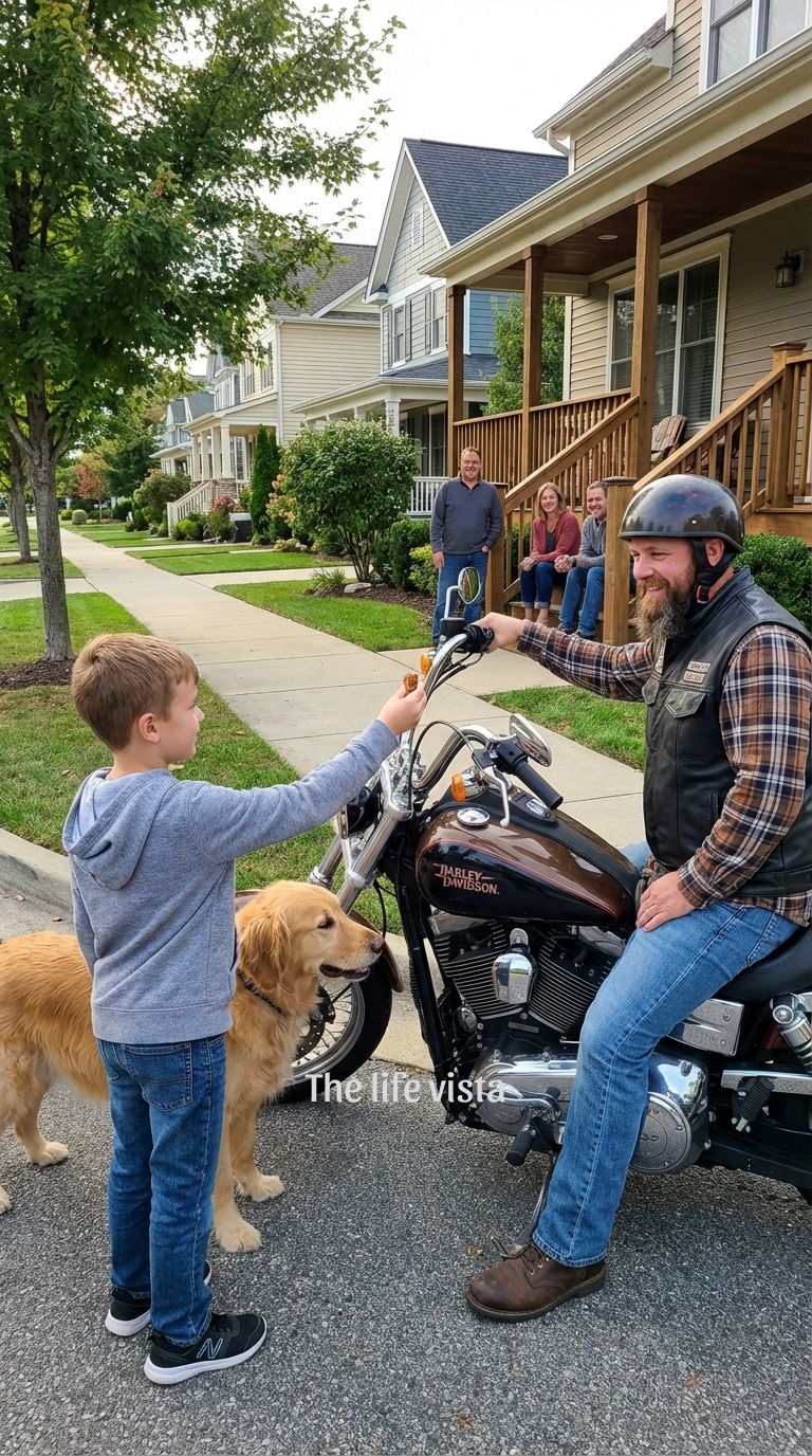 In the quiet suburban streets of Maple Ridge, where fences were freshly painted and neighbors measured each other by polite waves rather than real conversations, eight-year-old Wilder Thorne had a habit that his grandmother often described as “too trusting for his own good.” He saw goodness where others saw danger, and he believed in people long before they proved anything to deserve it. That habit was why he didn’t react with fear when he first noticed the biker who had recently moved into the small house at the end of their street.