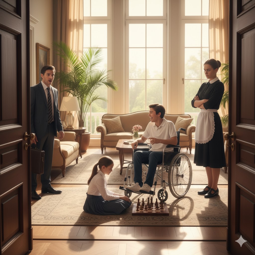 For a long moment, David stood in silence, unnoticed. His mind raced. He paid Maria, the maid, well to keep the house in order, not to bring her daughter into the lounge. But instead of anger, something else tightened in his chest — a strange, almost forgotten feeling. Seeing Oliver laugh, carefree and alive, was like witnessing a miracle.