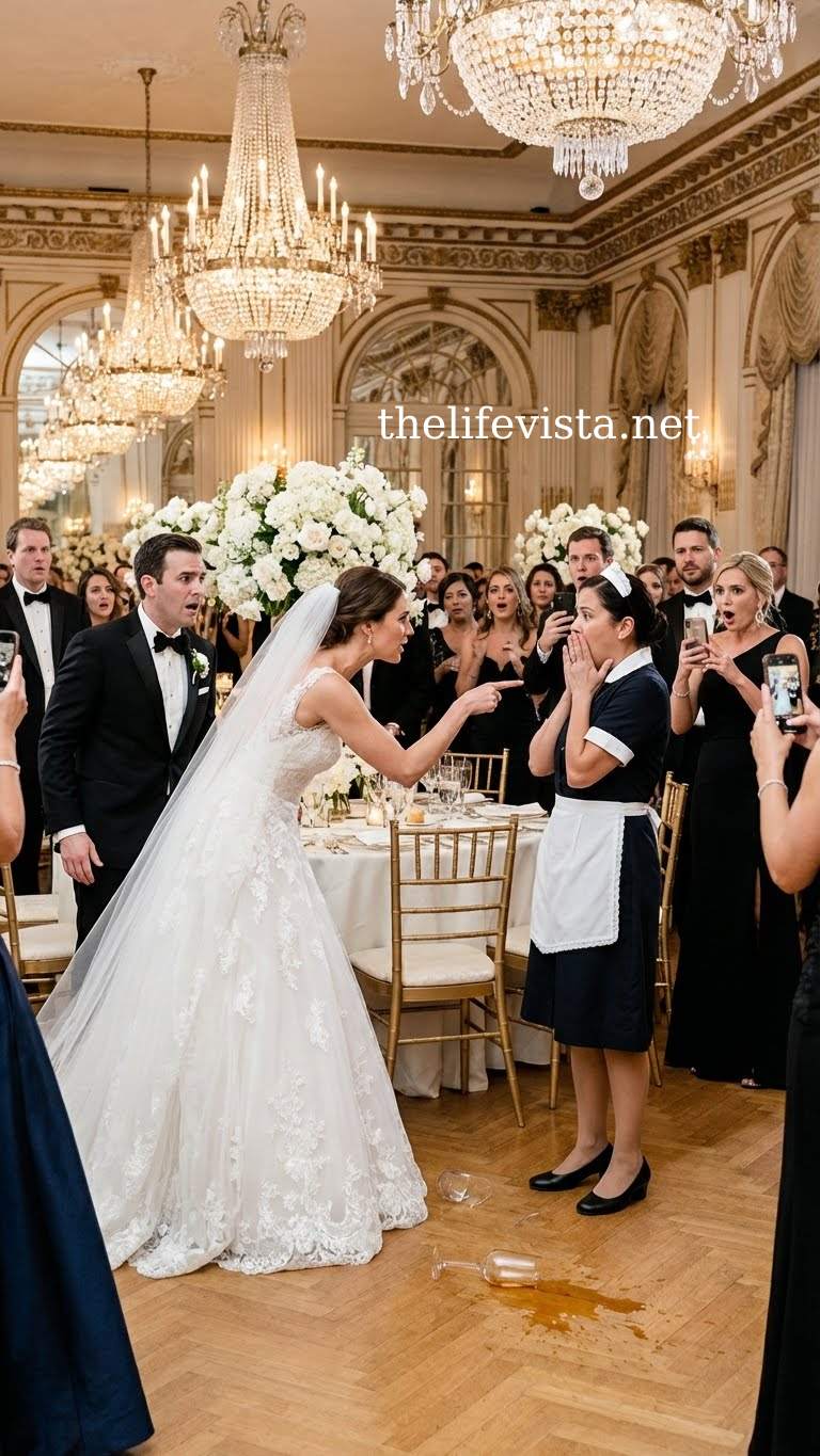 As Ava reached across to clear a table, her hand trembled. A full glass of red wine tipped, cascading down Lauren’s ivory gown. Gasps filled the room.