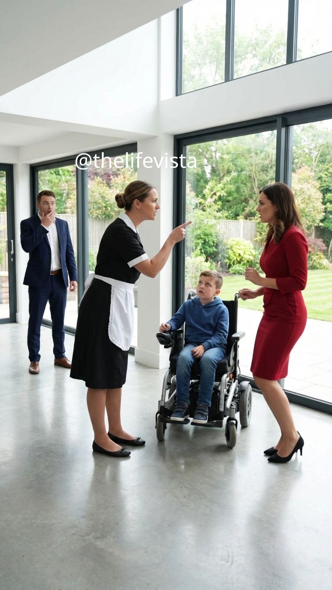 The boy in the wheelchair struggled to hold back his tears, trying not to show his pain. Then the maid rushed in and suddenly shouted, “Don’t do that!”—stopping everything in an instant.