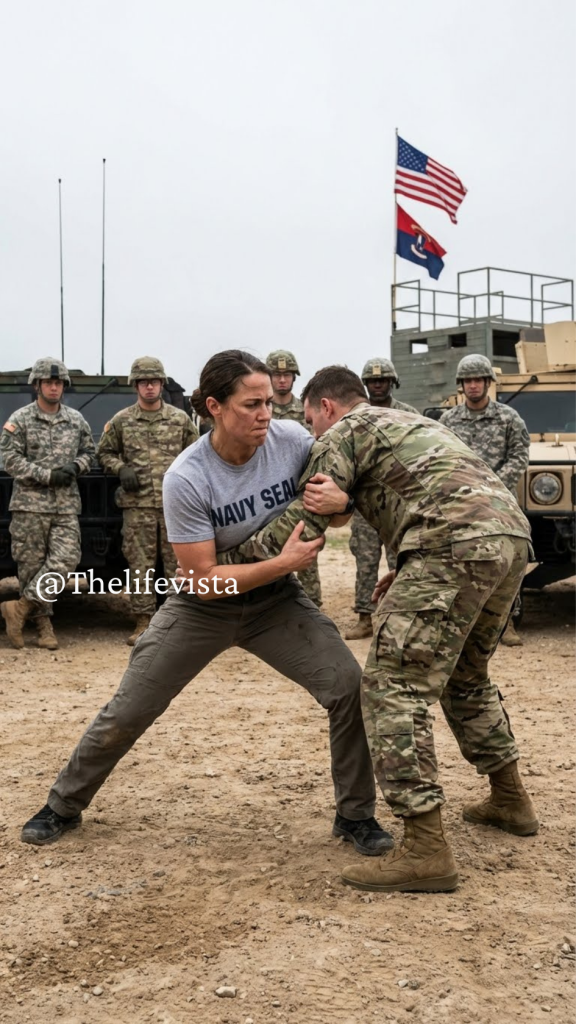 One dropped his water bottle. Another took a step back without realizing it. They were trained to respect rank, to memorize procedures. But this this was real. This was war born into movement. Every inch of her posture screamed lived experience. She stood slowly, letting the cadet scramble to his feet, humiliated and speechless.