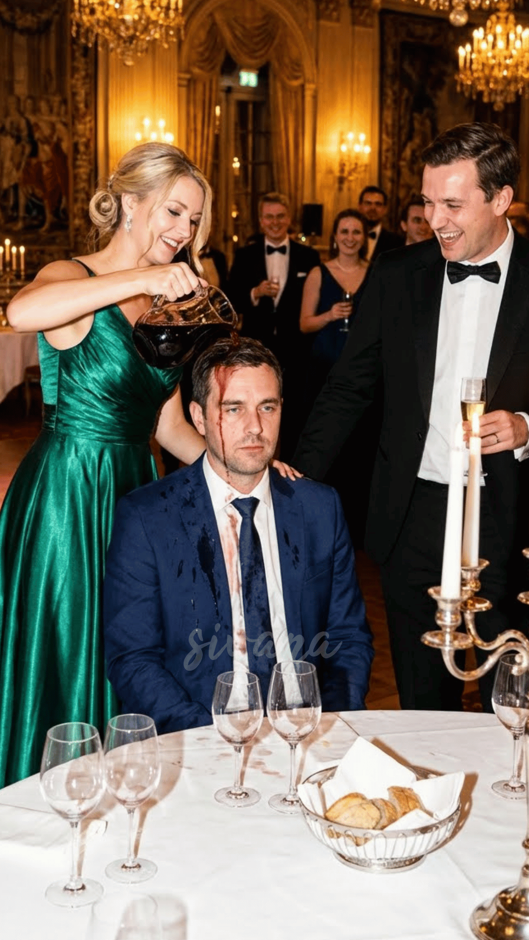 “I swear that guy keeps showing up where he shouldn’t,” a woman whispered to her friend, sipping champagne. “Maybe he’s a server trying to blend in?”