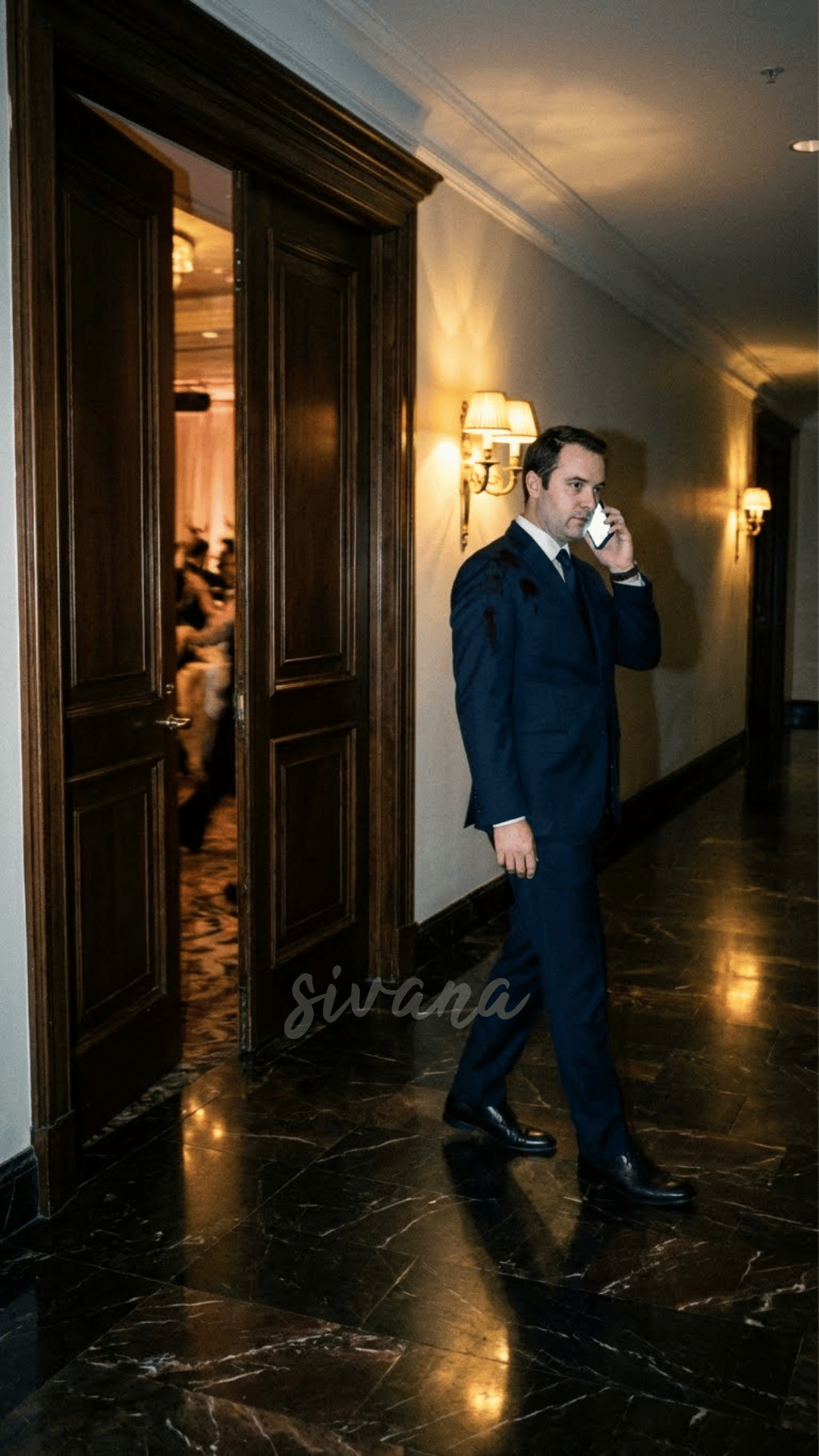 The hallway outside the ballroom was cool and silent. The burst of noise and humiliation faded behind the heavy doors.