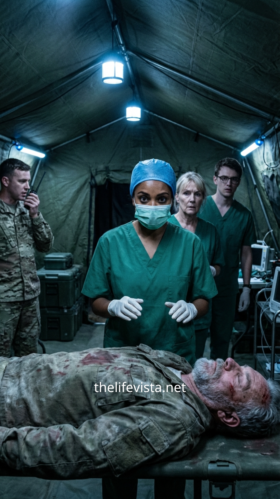 Somewhere below, inside those canvas tents and behind those reinforced barriers, Dr. Martinez was already preparing for the next emergency—the next impossible case, the next soldier whose life would hang by a thread.