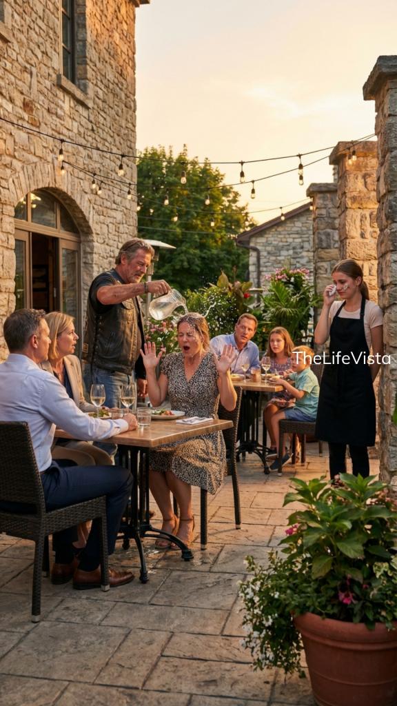 I sat there alone, dripping water onto the chair and the concrete beneath it. Every eye on the patio felt fixed on me. Some people were still recording. A woman at another table slowly shook her head and turned away.