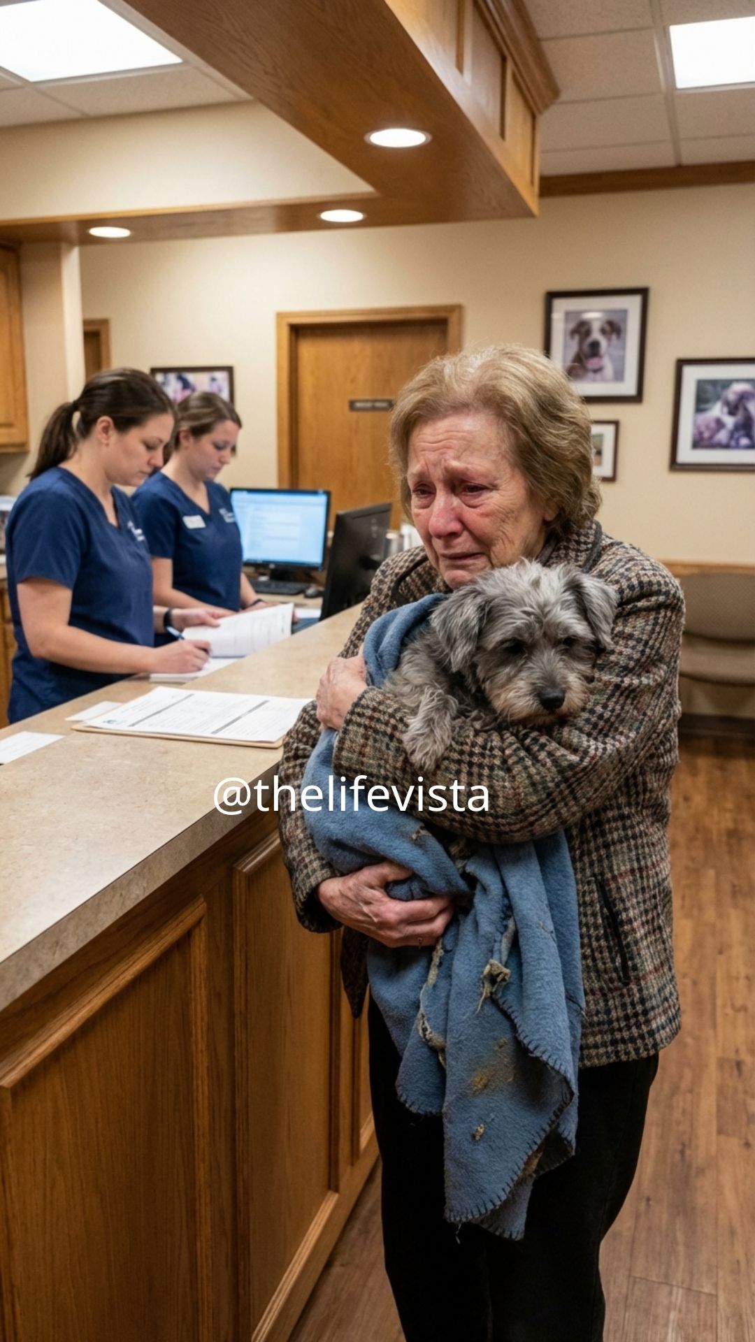 No appointment. No family with her. No friend. Just a tiny gray terrier in a towel, making a wet, scraping sound every time he tried to breathe. The sound was the kind that settles into a room immediately, a desperate rhythm that every veterinarian recognizes before a single test is run, the quiet warning that time may already be running short.