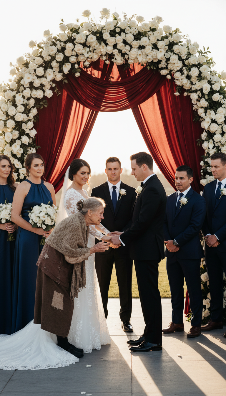 The old beggar stood by the wedding just to ask for a glass of water, but the bride turned pale as soon as she saw her and ran over, collapsed, and confessed the shocking truth.