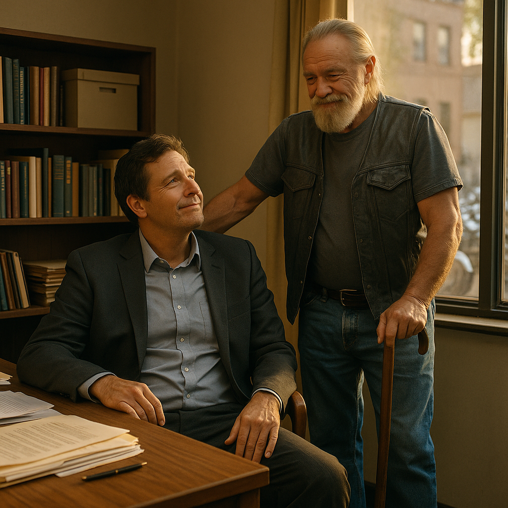The sight was a punch to the gut. Hawk—his old man, the biker, the relic of a world Ethan had buried beneath silk ties and legal briefs.