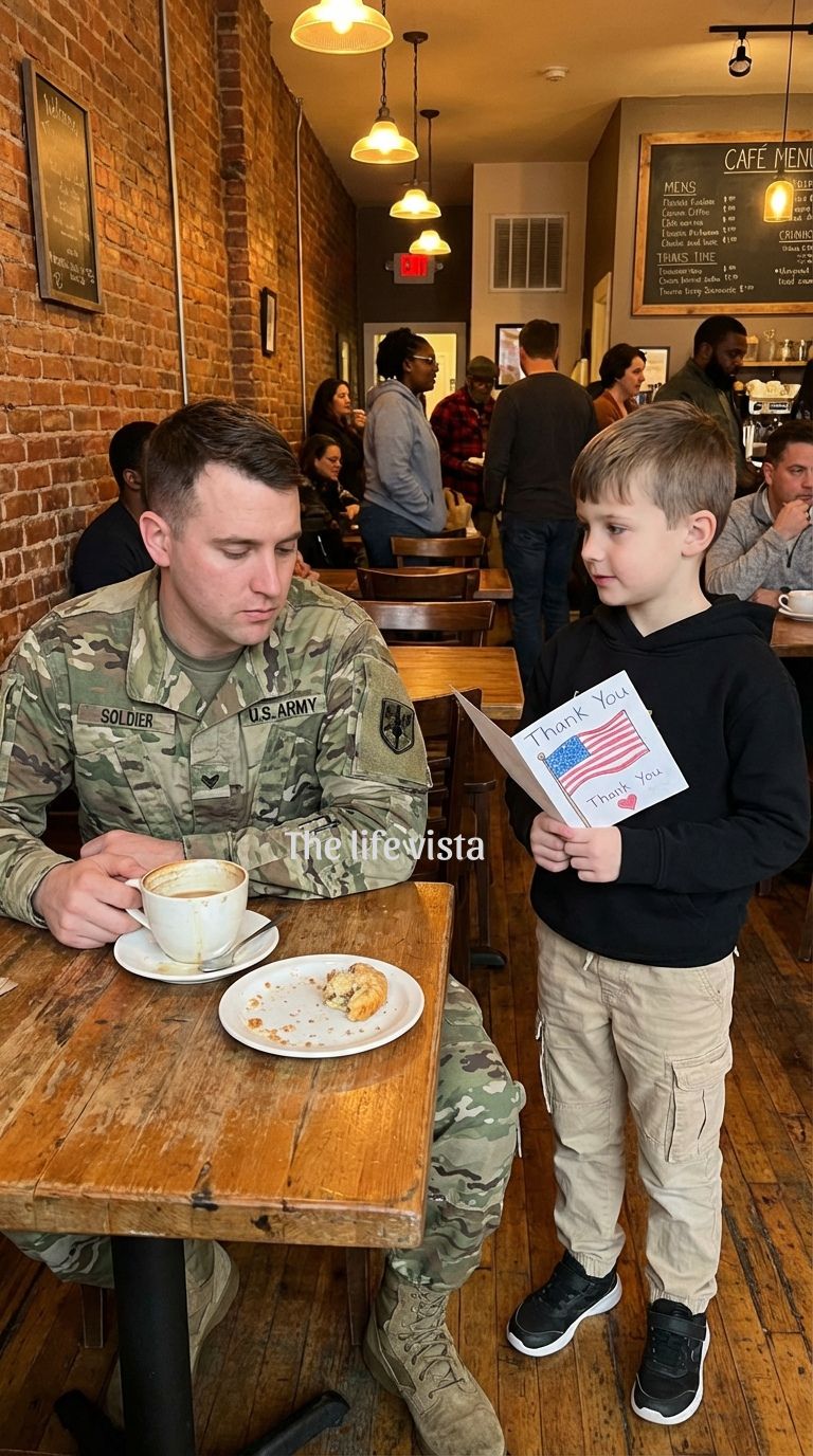 The voice came from the back of the café. A woman in a dark cardigan was standing up, her chair scraping harshly against the floor. She looked at the boy with a mix of alarm and a dawning, painful realization. She didn’t move toward him yet; she seemed caught in the gravity of the moment, a witness to a ritual she hadn’t authorized.