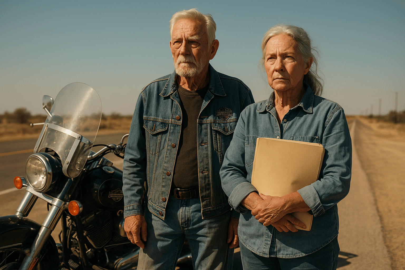 The bike rumbled steady beneath him — a sound that once meant freedom, now just an old man’s heartbeat turned mechanical.
