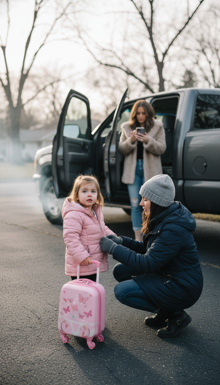 “You’re going to have so much fun with Daddy and Amanda,” I said, kneeling to zip her jacket, forcing a smile I didn’t feel.